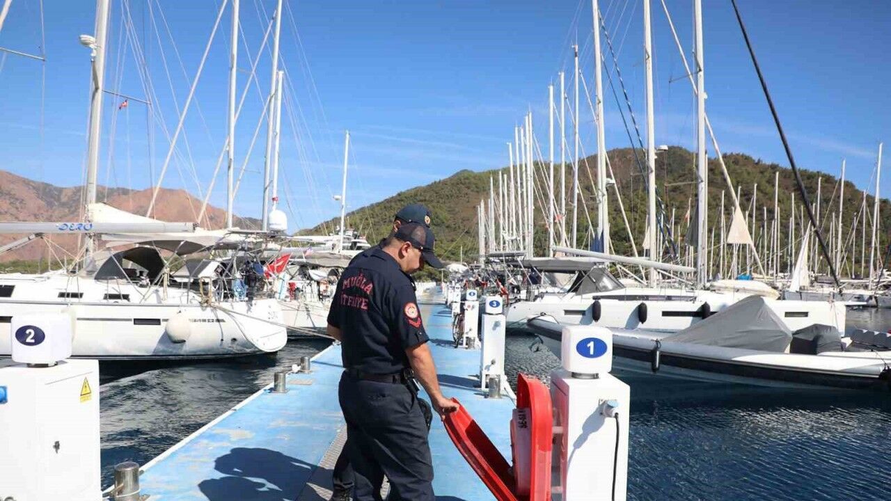 Muğla Büyükşehir Belediyesi İtfaiye Dairesi Başkanlığı önleme ve denetim birimi ile Zabıta ekipleri, yangın güvenliği tedbirlerini artırmak amacıyla il genelinde marina, liman ve çekek yerlerinde denetimlerini sürdürüyor.