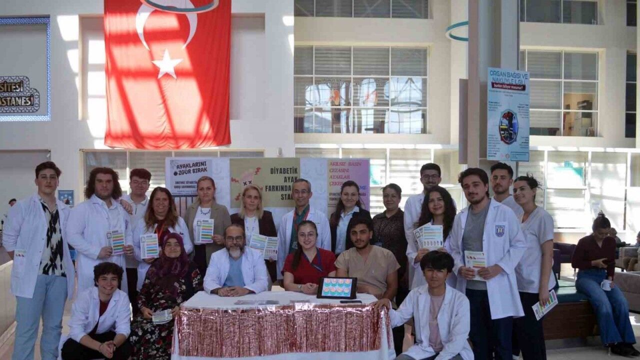 Muğla Eğitim ve Araştırma Hastanesi hekimlerinden Sualtı Hiperbarik Tıp Uzmanı Dr. Öğretim Üyesi Serkan Ergözen sorumluluğunda Tıp Fakültesi 1.sınıf öğrencileri tarafından sosyal sorumluluk projesi kapsamında ‘Ayaklarını Özgür Bırak! Unutma Diyabetik Ayağa Karşı Savunmasız Değilsin’ sloganıyla diyabet hastalarında diyabetik ayak yara bakımı farkındalık standı kurularak diyabet hastaları, hasta yakınları ve sağlık çalışanlarına diyabetik ayak, korunma yöntemleri ve ayak bakımı hakkında bilgilendirme yapılıp, broşür dağıtılarak farkındalığın artırılması hedeflendi.