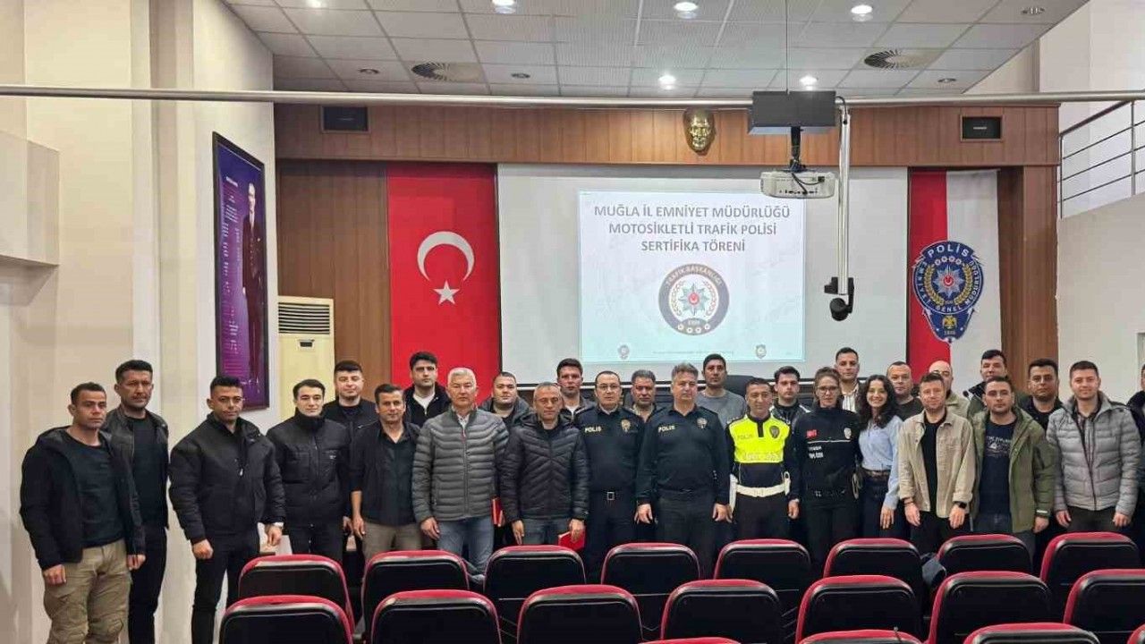 Muğla’nın yoğun trafiği ve turistik yapısı göz önünde bulundurularak planlanan eğitim programı sona erdi. Trafik Tescil ve Denetleme Şube Müdürlüğü bünyesinde görev yapacak olan personeller, motosikletli trafik polisi (Şahin) olabilmek için teorik ve uygulamalı birçok zorlu aşamadan geçti.