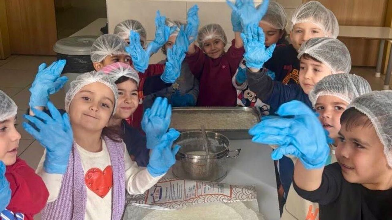 Minik öğrenciler, öğretmenlerinin rehberliğinde sütün şekerle buluşmasından güllaç yapraklarının ıslatılmasına kadar her aşamada aktif rol aldı. 'Minicik eller ve sevgi dolu yürekler' sloganıyla gerçekleştirilen etkinlikte, çocuklar üretmenin ve mutfak kültürümüzün bir parçası olmanın mutluluğunu paylaştı.