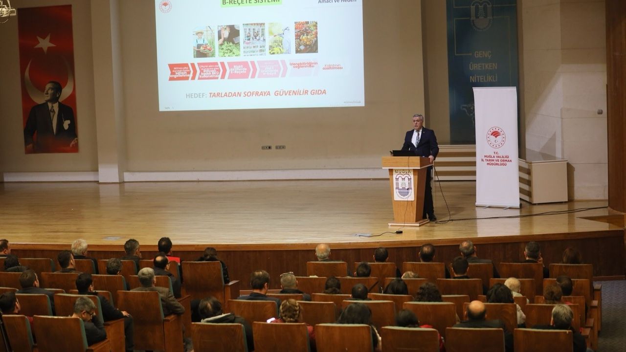 Muğla Tarım ve Orman İl Müdürlüğü ev sahipliğinde düzenlenen toplantıda bitki koruma ürünlerinde yeni bir dönemi başlatan B-REÇETE sistemi masaya yatırıldı. Genel Müdür Yardımcısı Doç. Dr. Yunus Bayram, sistemin 1 Temmuz 2026 itibarıyla tüm Türkiye'de zorunlu olacağını belirtti.