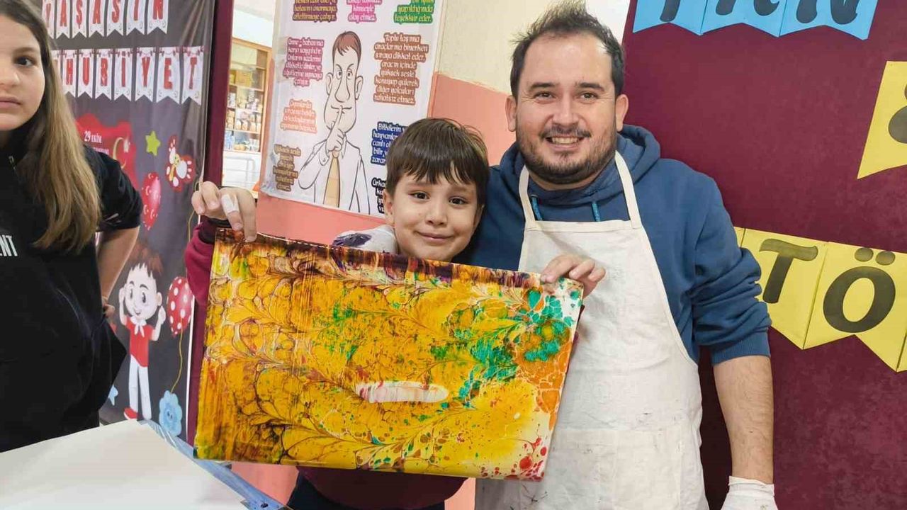 Uzman eğitmenler eşliğinde gerçekleştirilen etkinlikte, Türk-İslam sanatının en zarif örneklerinden biri olan Ebru Sanatı öğrencilere tanıtıldı. Çocuklara ebru sanatının tarihi yolculuğu, kitreyle yoğunlaştırılmış suyun gizemi, toprak boyaların özelliği ve at kılından yapılan fırçaların önemi anlatıldı. Teorik bilgilerin ardından kurulan ebru teknelerinin başına geçen öğrenciler, uygulamalı eğitime geçti.