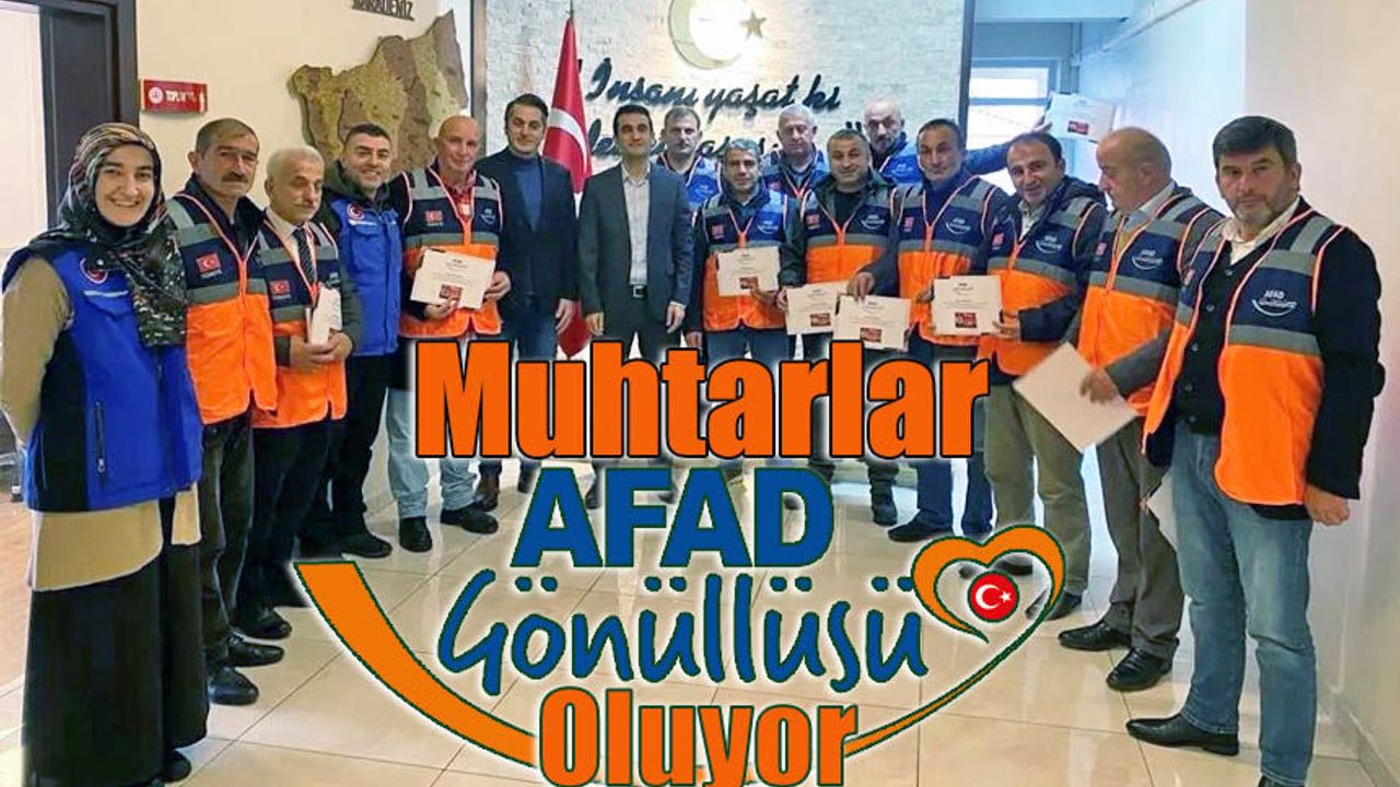 HABER:ARZU ERBAŞ - Rize’de muhtarlar AFAD Gönüllüsü olmak için eğitime alındı. AFAD Başkanlığının hazırladığı "Muhtarlar AFAD Gönüllüsü Oluyor" projesi kapsamında köy ve mahalle muhtarları eğitime alındı.