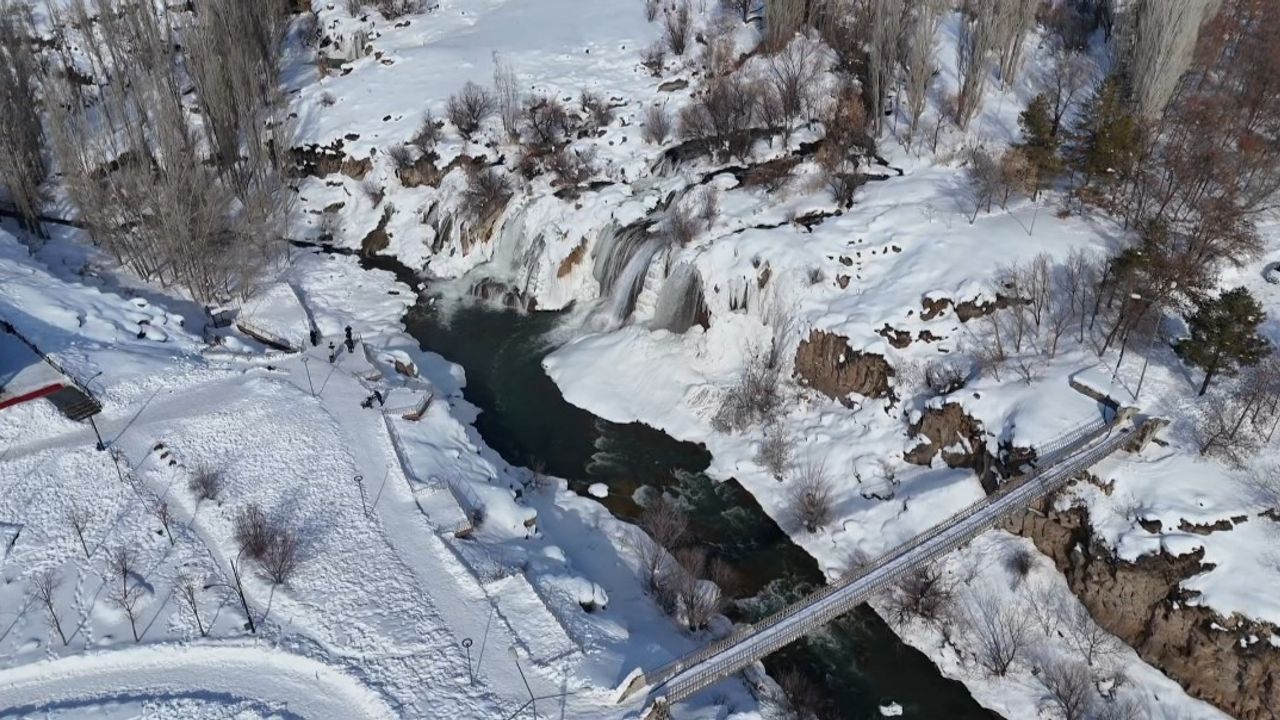 Van'ın doğa harikası Muradiye Şelalesi, dondurucu soğukların ardından adeta bir masal diyarına dönüştü. Hava sıcaklığının sıfırın altına düşmesiyle birlikte şelale buz tutarken, çevresini saran kar örtüsüyle ortaya çıkan manzara 'beyaz gelinlik' yakıştırmasını bir kez daha haklı çıkardı. Her mevsim binlerce turisti ağırlayan Muradiye Şelalesi, kış mevsiminin gelişiyle birlikte büyüleyici bir görünüme büründü. Bölgede etkili olan kar yağışı ve dondurucu soğuklar, yaklaşık 20 metre yükseklikten akan suları kısmen dondurarak dev buz sarkıtları oluşturdu.