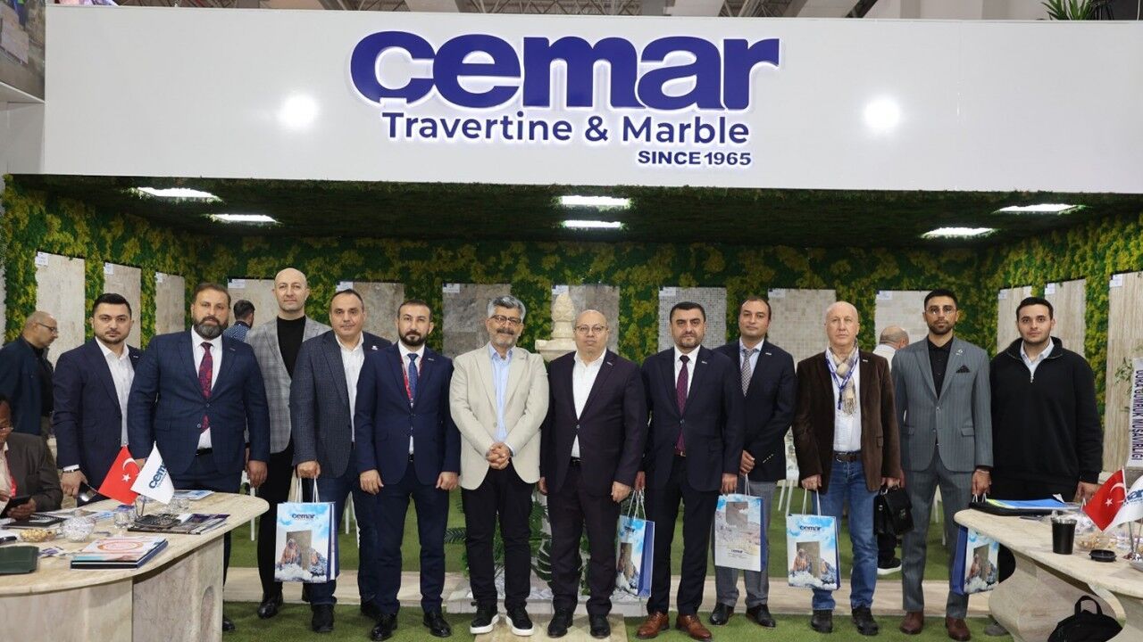 MÜSİAD İzmir Şube Başkanı Gökhan Temur ve yönetimi ise, fuarın ikinci gününde fuarda çeşitli incelemeler yaparak Cemar Mermer ve Traverten’in standını ziyaret etti. Burada firmanın Genel Müdürü Yusuf Yalçın ile bir süre sohbet eden İzmir Şube Başkanı Temur ve yönetimi, firma yetkililerinden üretim ve ihracat çalışmaları hakkında bilgi aldı.