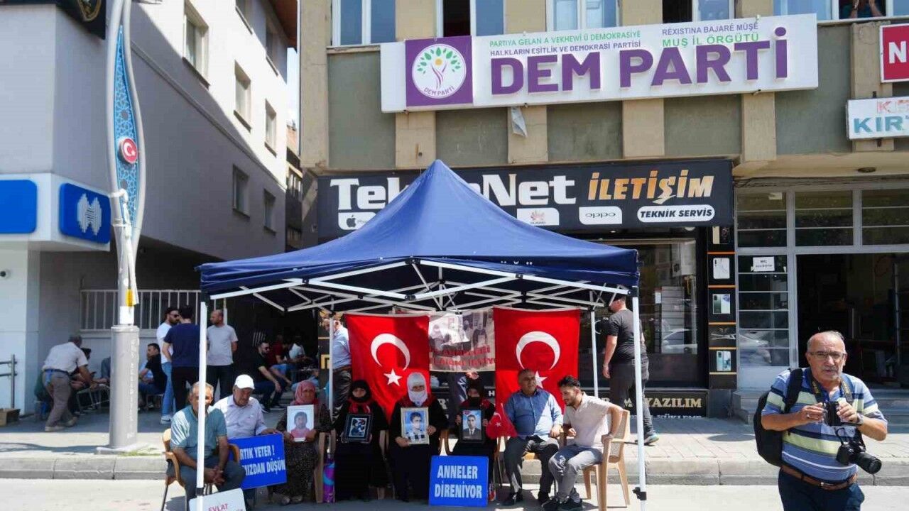 Muş’ta çocuklarının terör örgütü PKK tarafından kandırılarak dağa götürüldüğünü belirten aileler, DEM Parti İl Başkanlığı binası önündeki eylemlerine devam ederken, "Terörsüz Türkiye" hedefi doğrultusunda TBMM’de kurulan komisyondan umutlu olduklarını belirtti.