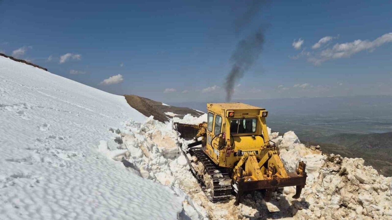 Muş İl Özel İdaresi ekipleri, bahar mevsiminde yer yer 2 metreyi bulan karda yol açma çalışmalarını aralıksız sürdürüyor.