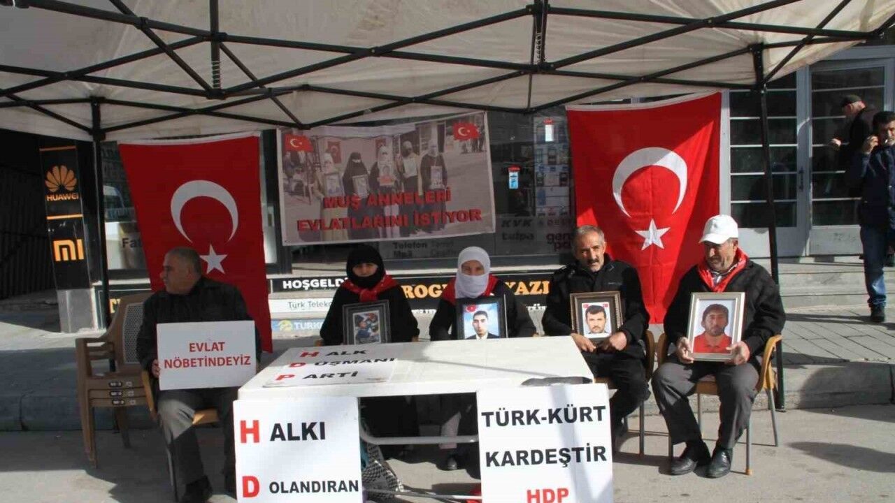 Muş’ta çocuklarının terör örgütü PKK tarafından kandırılarak dağa kaçırılmasından HDP’yi sorumlu tutan ailelerin evlat nöbeti sürüyor.