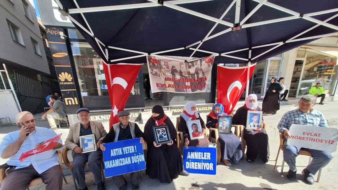 Muş’ta çocukları terör örgütü PKK tarafından kaçırılan aileler, DEM Parti İl Başkanlığı binası önündeki eylemlerine kararlılıkla devam ediyor.