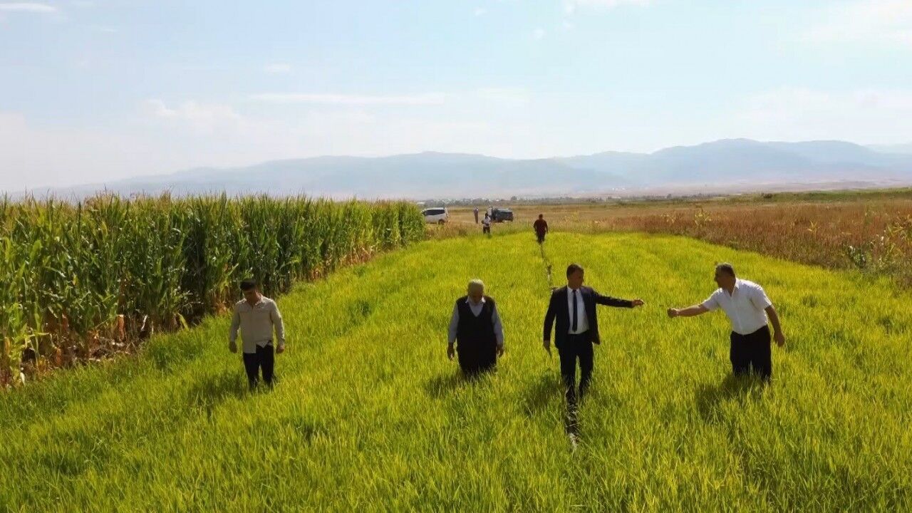 Muş’ta ilk defa deneme amaçlı 3 dekara ekimi yapılan pirincin hasat öncesi son bakımı yapıldı.