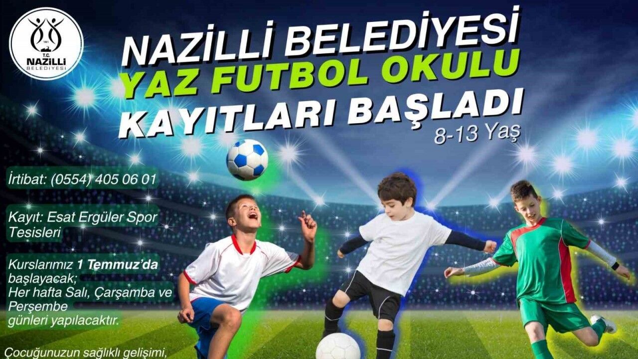 Çocukların sağlıklı gelişimi, sosyalleşmesi ve eğlenerek öğrenmesi için doğal çim sahada spor imkanı sunan Nazilli Belediyesi Yaz Futbol Okulu için kayıtlar başladı.