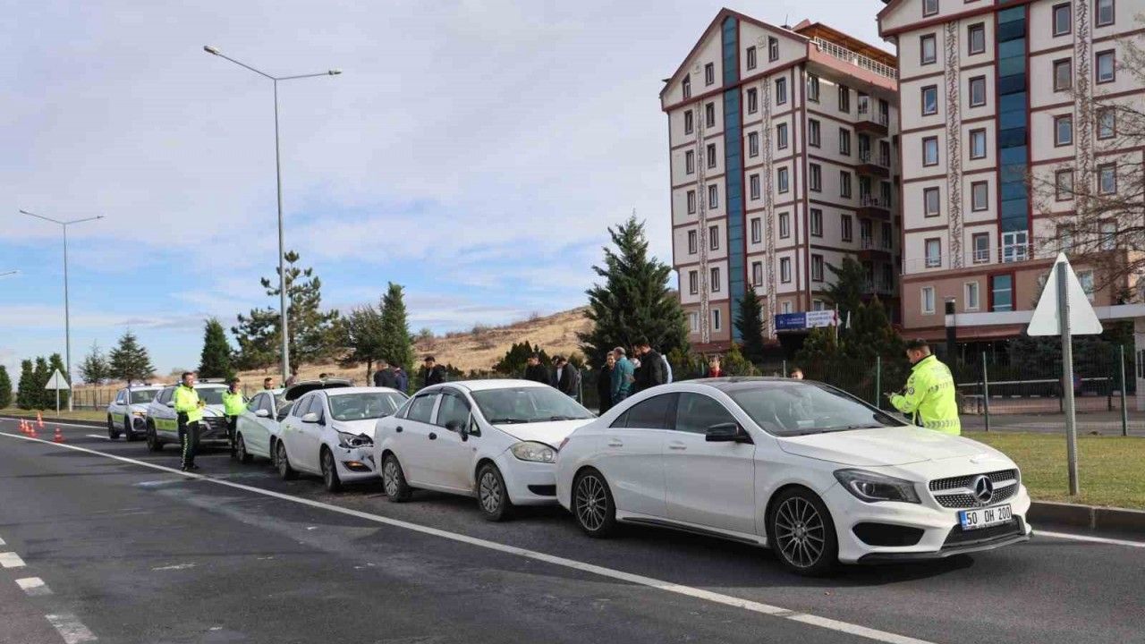 Kaza 2000 Evler Mahallesi Zübeyde Hanım Caddesi Üniversite kavşağında meydana geldi. Edinilen bilgiye göre 50 DH 200 plakalı Mercedes marka araç sürücüsü M. G., kavşakta kırmızı ışık nedeniyle durunca, aynı istikamette seyreden 50 UA 323 plakalı araç sürücüsü F.K. duramayarak önündeki araca çaptı. Daha sonra E. D.’nin kullandığı 42 BCN 370 plakalı aracı ile önündeki araca, H. C. A.’da 50 AET 138 plakalı otomobili ile önündeki araca çarptı. 4 aracın karıştığı zincirleme trafik kazasını gören vatandaşların ihbarı üzerine kaza yerine sağlık ve polis ekipleri sevk edildi. Kazada otomobillerde yolcu olarak bulunan 2 kişi yaralandı. Yaralılar kaza yerinde yapılan ilk müdahalenin ardından Nevşehir Devlet Hastanesi’nde tedavi altına alındı. Kaza nedeniyle trafik bir süre tek şeritten kontrollü olarak ilerledi. Trafik polisleri ve vatandaşlar kazaya karışan araçları iterek yol dışı etti. Araçların kaldırılmasından sonra karayolu tekrar trafiğe açıldı.