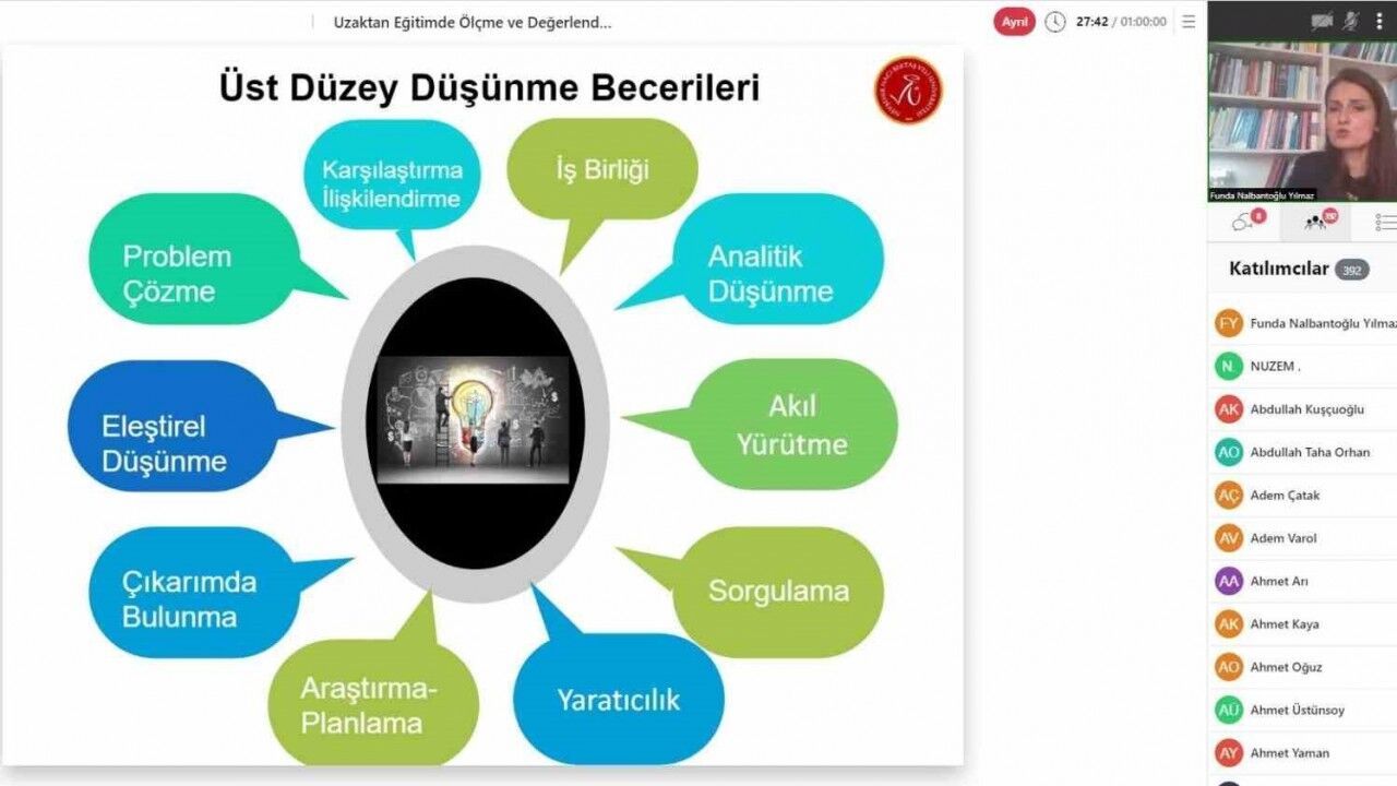 Nevşehir Hacı Bektaş Veli Üniversitesi (NEVÜ) Eğitim Fakültesi, Rehberlik ve Psikolojik Danışmanlık Anabilim Dalı Öğretim Üyesi Doç. Dr. Funda Nalbantoğlu Yılmaz tarafından final sınavları öncesi doğru ölçme uygulamaları için farkındalık oluşturmak amacıyla akademik personele yönelik “Uzaktan Eğitimde Ölçme ve Değerlendirme” konulu çevrim içi seminer verildi.