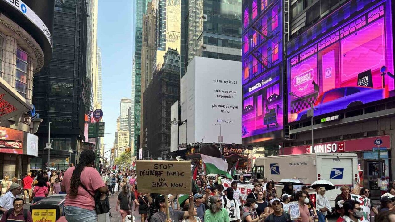 ABD’nin New York kentinde on binlerce kişi, İsrail’in Gazze’deki saldırılarını protesto etmek için sokaklara çıkarak, bölgedeki açlığa son verilmesi, insani yardımların önünün açılması ve acil ateşkes sağlanması çağrısında bulundu. Protestolara bir dönem tutuklu bulunan Filistinli aktivist ve eski Columbia Üniversitesi öğrencisi Mahmoud Khalil de katıldı.