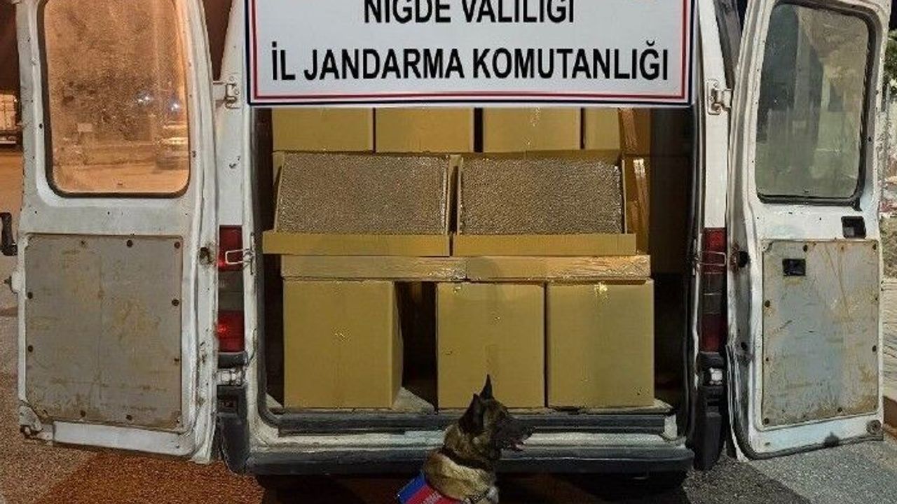 Niğde İl Jandarma Komutanlığı ekiplerince yürütülen yol kontrolü ve arama faaliyetleri kapsamında bir araçta yapılan aramada 1 milyon 200 bin makaron ele geçirildi.