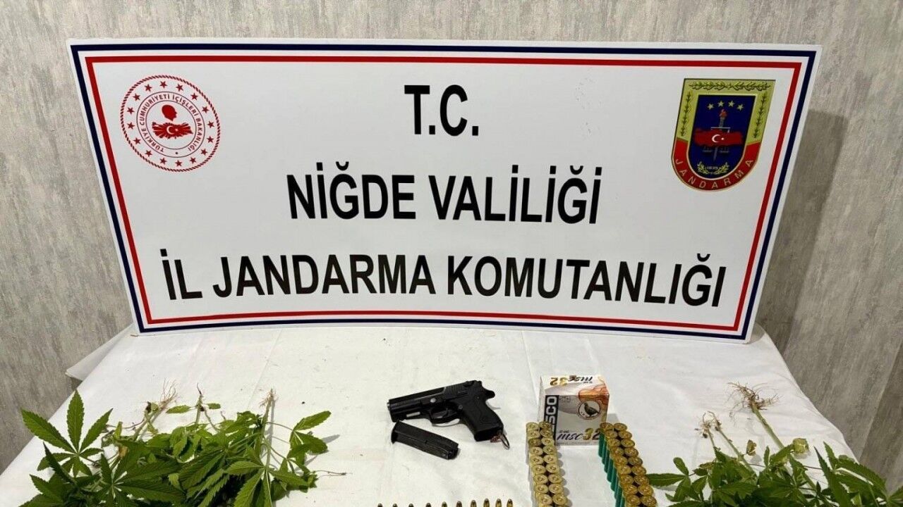 Niğde İl Jandarma Komutanlığı ekipleri tarafından yapılan çalışmalarda uyuşturucu madde ve ruhsatsız silah ele geçirildi.