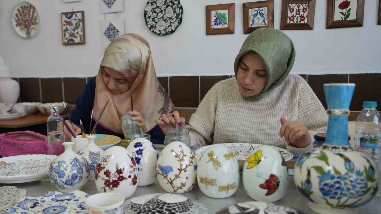 Seramik üzerine işlenen Osmanlı motifleriyle birbirinden güzel eserler ortaya çıkaran kadınlar, hem unutulmaya yüz tutmuş bir kültürel mirası yaşatıyor hem de ürettikleri ürünlerle ekonomik kazanç sağlıyor. Halk Eğitimi Merkezi’nde verilen eğitimlerle çini sanatının tüm inceliklerini öğrenen kadınlar, aldıkları uygulamalı dersler sayesinde tabaktan vazoya, pano süslemesinden çeşitli hediyelik objelere kadar pek çok ürünü başarıyla hazırlıyor. Kurs Eğitmeni Sema Günay, çini yapımının teknik aşamalarını detaylarıyla öğrettiklerini belirterek, kursiyerlerin kısa sürede büyük ilerleme kaydettiğini dile getirdi. Günay, kursun gördüğü ilgiden memnuniyet duyduğunu aktararak şunları söyledi:
