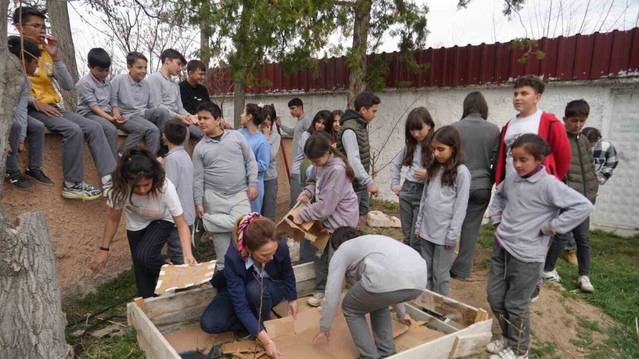 Verilen teorik eğitimin ardından kompost yapımını ve yağmur suyu hasadı yöntemlerini öğrenen öğrenciler, okullarının bahçelerinde uygulama gerçekleştirdi.