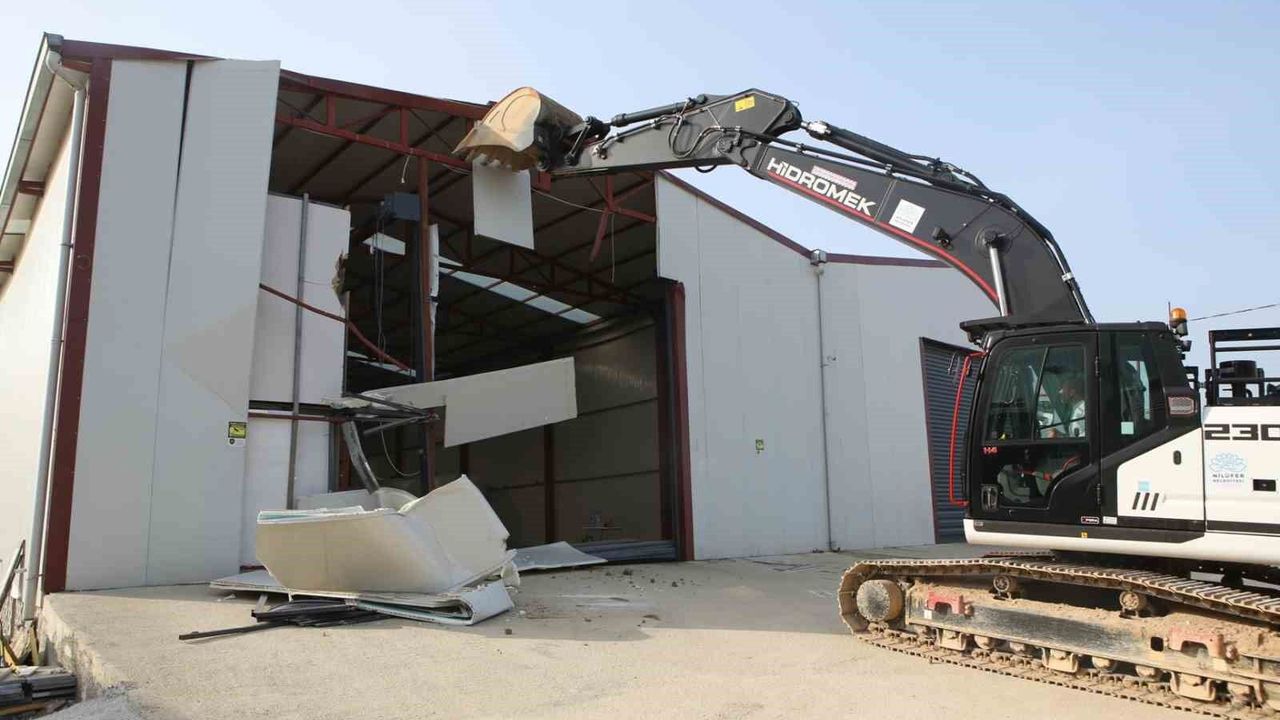 Nilüfer Belediyesi, tarım alanlarını korumak, kent estetiğini ve planlı yapılaşmayı güvence altına almak amacıyla kaçak yapılarla mücadelesini sürdürüyor. Belediye ekipleri, Tahtalı Mahallesi'nde tarım alanı üzerine ruhsatsız olarak inşa edilen yaklaşık 900 metrekarelik depoyu yıktı.