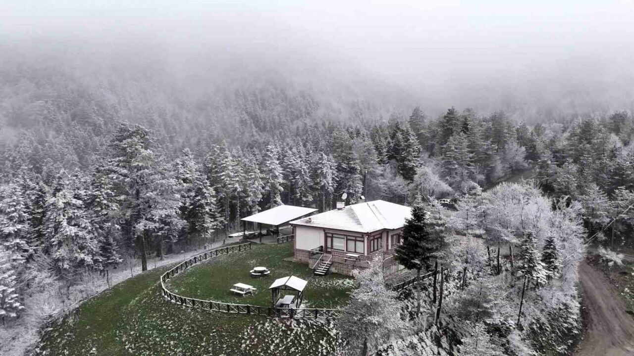 Karabük’ün yüksek kesimlerinde Nisan ayında etkili olan kar yağışı sonrası beyaz örtüyle kaplanan ormanlar dron ile görüntülendi.