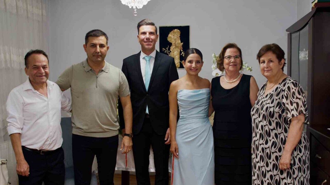 Kuşadası Belediye Başkanı Ömer Günel, Süper Lig hakemi ve Türkiye Faal Futbol Hakemleri ve Gözlemcileri Derneği (TFFHGD) Aydın Şubesi Başkanı Eren Özyemişçioğlu ile Ömerbeyli Tarım Kredi Kooperatifi Müdürü Gülşah Değirmenci’nin nişan yüzüklerini taktı.