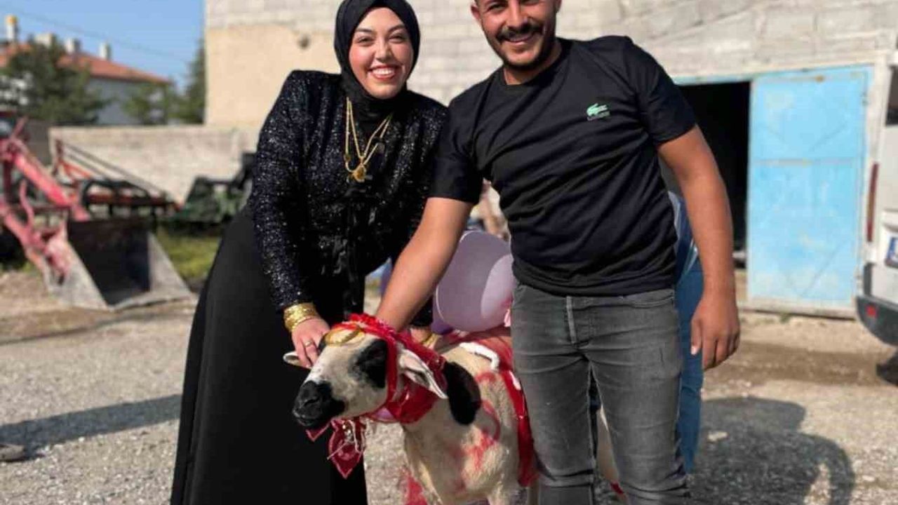 Nişanlısına süslediği koyunu hediye etti