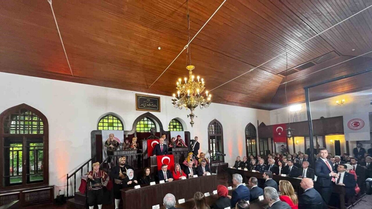 İlk meclisin zor şartlar altında tarihi bir çalışma yürüttüğünü söyleyen Kurtulmuş, "O gün burada sizlerin oturduğunuz sandalyelerde, masalarda oturanlar aslında birçoğunun son derece zor şartlar içerisinde buraya kadar geldikleri, İstanbul düşman tarafından işgal edildikten sonra milli mahremiyetimizi korumak, milli kimliğimizi muhafaza etmek için burada yeniden bir kurtuluş destanını başlattıklarını biliyoruz. Çoğunun belki kendi kişisel hayatları da büyük zorluklarla geçmiş kahramanlardır. Bir kısmının düzenli maaşı, geliri yoktu. Her birisi Anadolu’nun farklı köşesinden gelmiş, bir kısmı da artık toplanamaz, karar alamaz duruma düşmüş olan Meclis-i Mebusan’ın üyesi olan insanlar burada bir araya gelerek sadece bir meclis, sadece siyasi kararların alındığı bir mekan değil, aynı zamanda Milli Mücadele’nin kumanda merkezi olan bir mekanı da tesis etmişlerdir. Burası bu tarafından baktığınız zaman bir meclis olmanın çok öncesinde bir karargahtı, bir ordugahtı. Burada alınan kararlar ülkenin bağımsızlık istikametinde sahadaki önemli askeri harekatlarına da yön vermiştir. Hatta Polatlı’ya kadar düşmanın geldiği, burada toplantılar yapılırken top seslerinin dahi duyulduğu ortamda milli kimliklerinden, bağımsızlık ülküsünden asla vazgeçmeyen o büyük kahramanlar, burada gerçekten milletin geleceğine yön verecek tarihi kararlara imza attılar" ifadelerini kullandı.