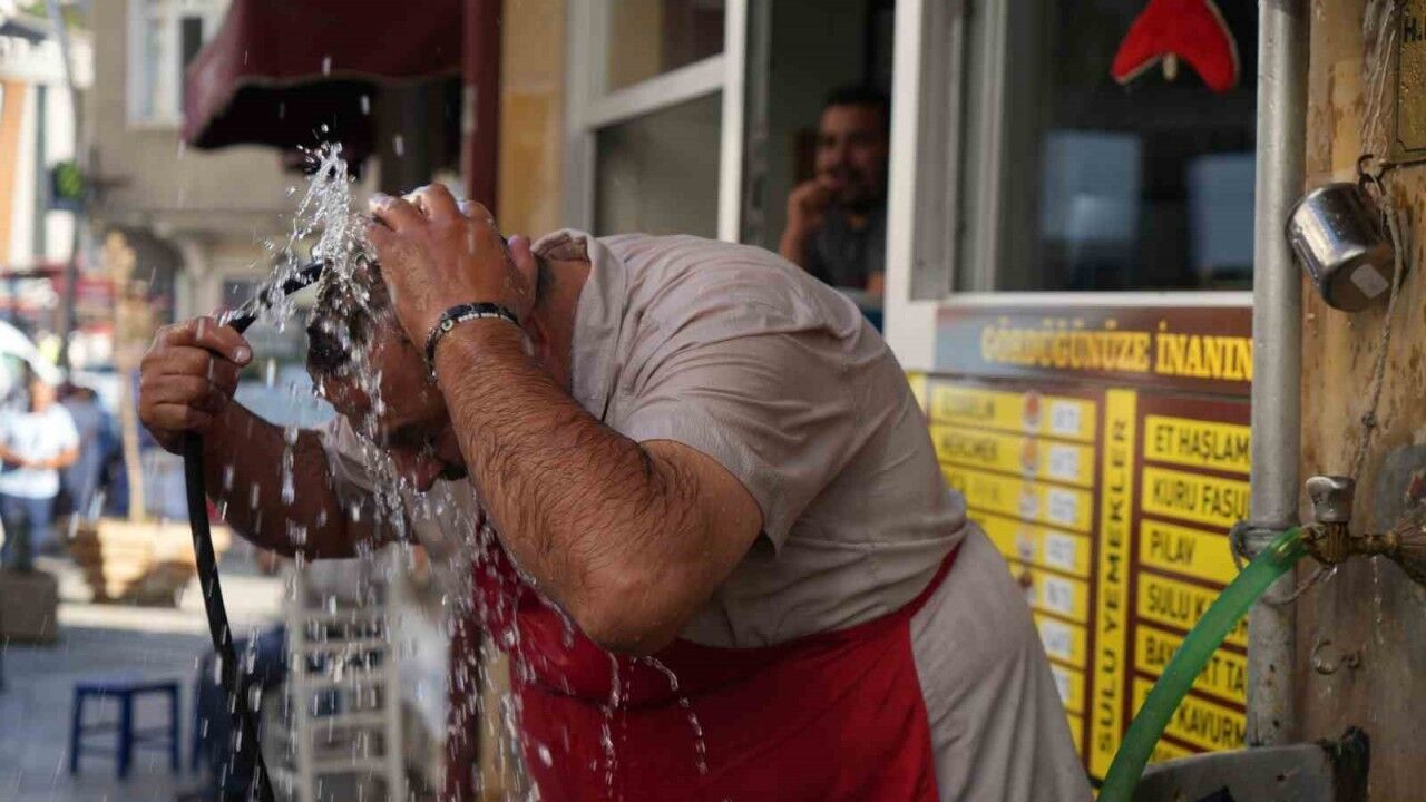 Kent merkezinde lokanta işletmeciliği yapan Osman Demirhan, ocak başında yüksek sıcaklık altında çalışmakta zorlanınca dükkânının önüne yaptırdıkları hayrat çeşmesine hortum bağlayıp, kendini yıkamaya başladı. Gün içinde fırsat buldukça kendini yıkayan Demirhan, bu şekilde serinlediğini dile getirdi.