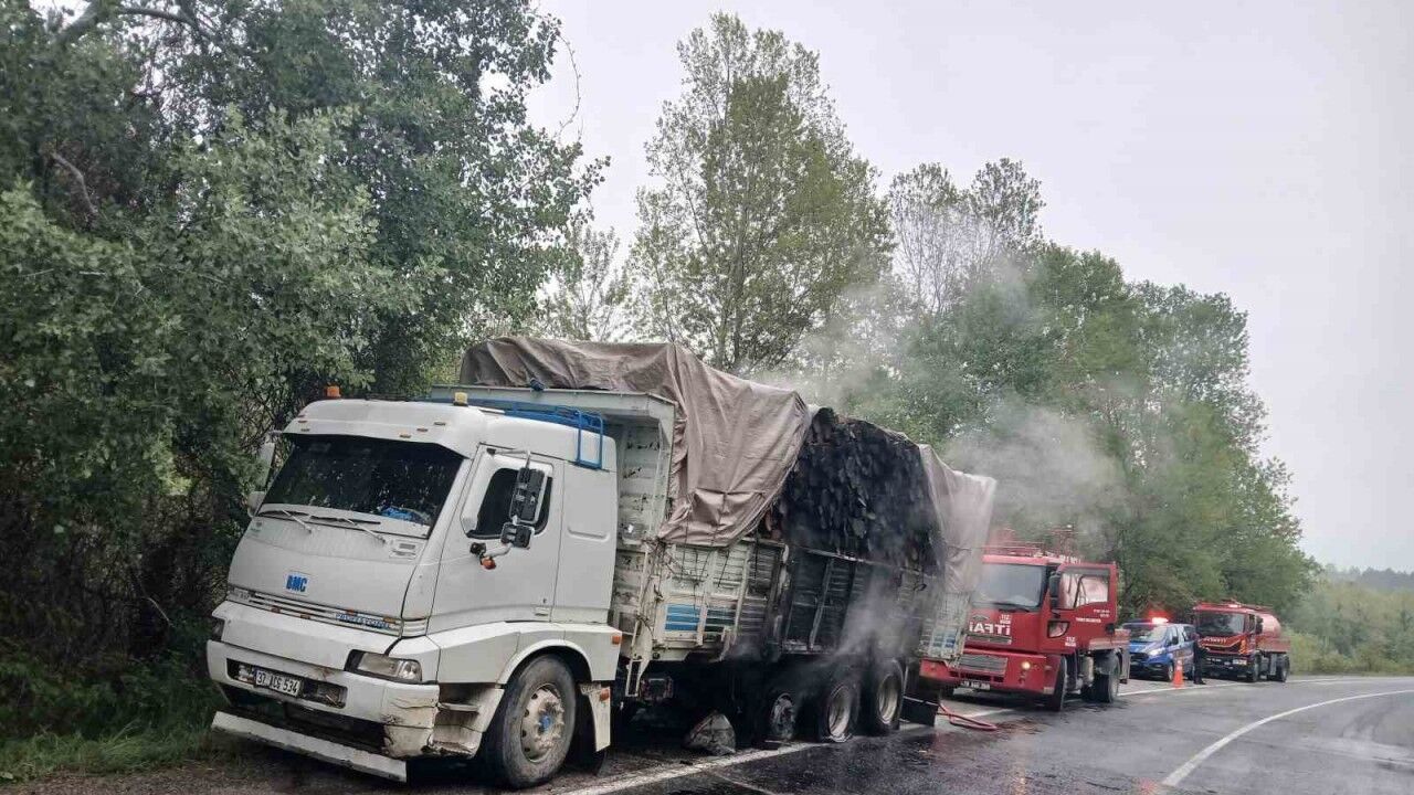 Karabük’ün Yenice ilçesinde seyir halindeyken alev alan odun yüklü kamyonda çıkan yangın itfaiye ekiplerince büyümeden söndürüldü.