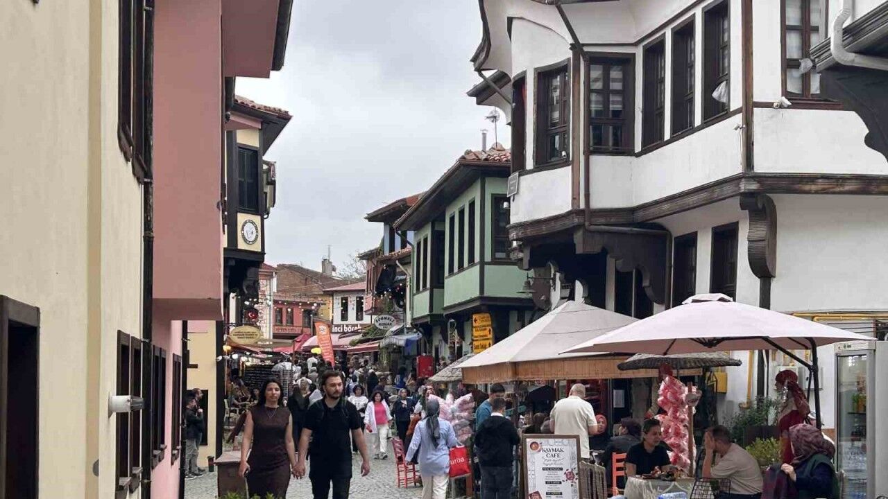 Eskişehir’in Tarihi Odunpazarı bölgesinde, serinleyen havaya rağmen hafta sonunu fırsat bilen yerli ve yabancı turistlerin ilgisiyle birlikte yoğunluk yaşanıyor.