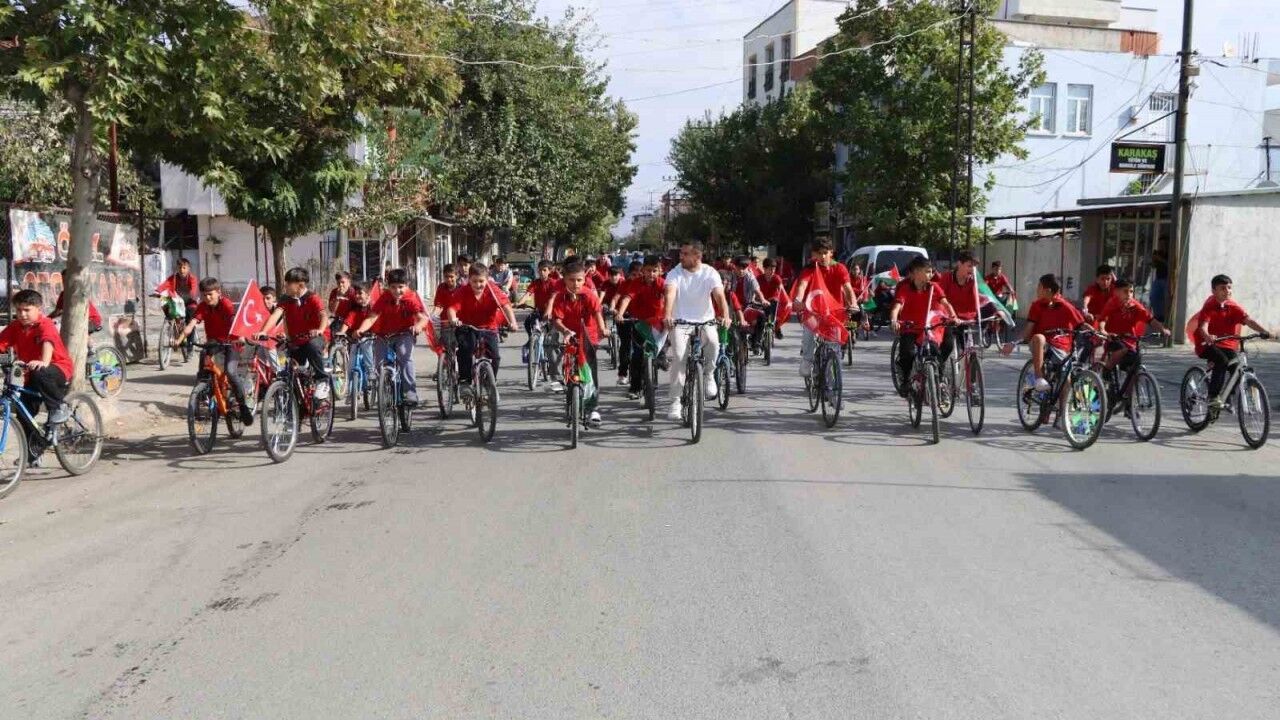 Gazze’de yaşanan acılara sessiz kalmak istemeyen öğrenciler, savaşın mağduru çocuklara destek olmak ve onların sesi olmak amacıyla etkinliğe katıldı. Mevlana Ortaokulu önünden başlayan etkinlik, Mehmet Ali Turan Caddesi güzergahı boyunca devam ederek Kaymakamlık bahçesinde sona erdi. Etkinlikte öğrenciler, Gazze’deki çocukların bisiklet sürmeyi, oyun oynamayı ve gülmeyi özlediği mesajını vererek, savaşlardan en çok çocukların etkilendiğine dikkat çekti.
