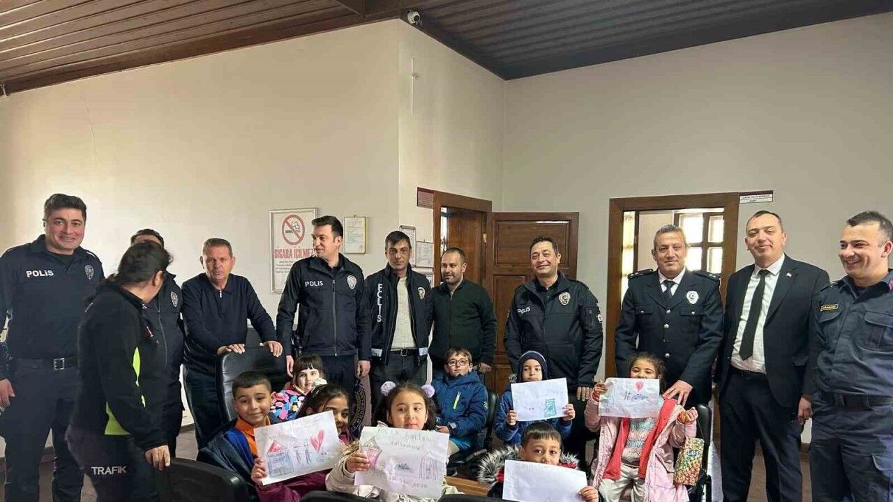 Polis memurlarına yaptıkları resimleri takdim eden öğrenciler, daha sonra karakol içerisinde bulunan birimleri gezerek bilgi aldı. Ziyarete katılan İlçe Milli Eğitim Müdürü Serhat Özkaya "180’ inci kuruluş yılında her zamankinden daha güçlü ve dünyada da önemli bir konuma sahip olan emniyet teşkilatımızın kuruluşunu ve bütün emniyet çalışanlarımızın haftasını kutluyoruz" dedi.