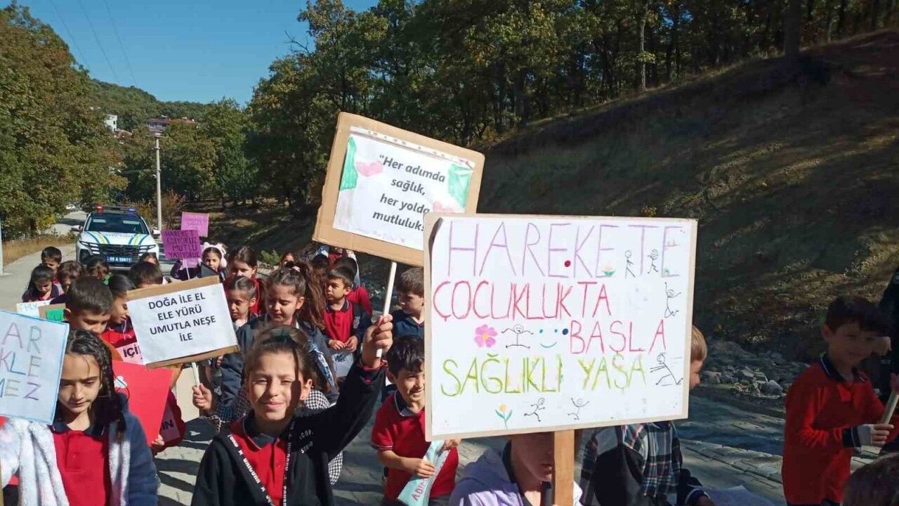 Samsun’un Havza ilçesinde 100. Yıl İlkokulu öğrencileri, "3-4 Ekim Dünya Yürüyüş Günü" kapsamında sağlıklı yaşam için pankartlarla yürüyüş gerçekleştirdi.