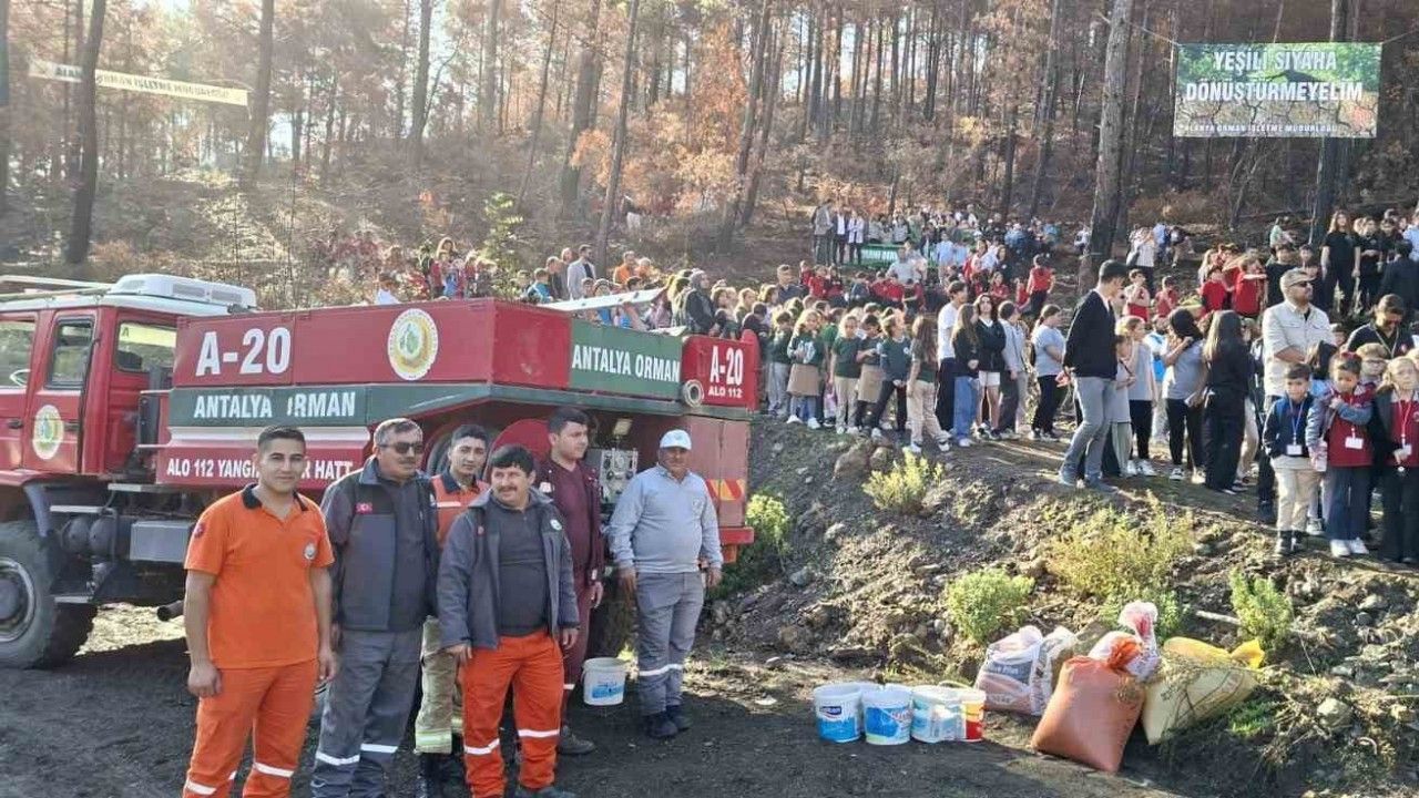 Alanya Milli Eğitim Müdürlüğü, ’Çevreme Duyarlıyım Değerlerime Sahip Çıkıyorum Projesi’ çerçevesinde Şıhlar Mahallesi yangın alanında ’Orman Yangınları Farkındalık Eğitimi’ etkinliği yapıldı. Alanya İlçe Milli Eğitim Müdürü Yusuf Yılmaz bu anlamlı etkinlik hakkında yaptığı açıklamada, "Etkinlik ÇEDES Projesi paydaşlarından Alanya Milli Eğitim Müdürlüğü, Alanya Müftülüğü ve Alanya Gençlik Spor Müdürlüğü’nün katkılarıyla, Alanya Orman İşletme Müdürlüğü, Alanya Belediyesi ve Antalya AFAD’ın destekleri ile gerçekleştirilmiş, 130 okuldan bin 200 öğrenci katılmıştır. Etkinlik esnasında öğrenciler tarafından tohum ekimi gerçekleştirilmiş, orman yangınların sebepleri, yangın söndürme çalışmaları, yangınların zararları ile ilgili öğrencilere bilgi verilmiştir" dedi.