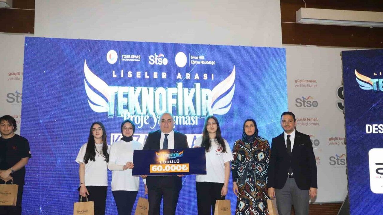Sivas Valiliği himayesinde Sivas İl Millî Eğitim Müdürlüğü, Sivas Ticaret ve Sanayi Odası (STSO), Türkiye Odalar ve Borsalar Birliği (TOBB) Sivas Genç Girişimciler Kurulu iş birliğinde hayata geçirilen ‘Teknofikir’ Projesi kapsamında düzenlenen liseler arası proje yarışmasında dereceye giren projeler için ödül töreni düzenlendi. Ticaret ve Sanayi Odası konferans salonunda düzenlenen programa Vali Yardımcısı İlhami Doğan, Sivas İl Millî Eğitim Müdürü Fatih Erdoğan, STSO Başkanı Zeki Özdemir, TSO Meclis Başkanı Osman Yıldırım, Sivas Ticaret ve Sanayi Odası TOBB Sivas Genç Girişimciler Kurulu Başkanı Mustafa Hazırbulan, öğretmen ve öğrenciler katıldı. Toplamda 230 proje başvurusu yapılan yarışmada jüri değerlendirmeleri sonucunda 20 proje finalist olarak belirlendi. Final aşamasında ise jüri tarafından yapılan değerlendirmelerde ilk 5 proje ödüle layık görüldü. Derece alan okulların proje takımlarına ödülleri takdim edildi. Daha sonra Vali Yardımcısı İlhami Doğan, Millî Eğitim Müdürü Fatih Erdoğan ve STSO Başkanı Zeki Özdemir, yarışmaya katılım sağlayan ve derece elde eden tüm öğrencileri projelerinin sergilendiği stantları da ziyaret ederek başarılarının devamını diledi.