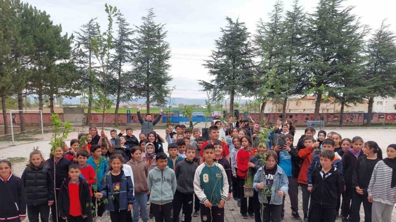 Afyonkarahisar’ın Şuhut ilçesinde Atatürk Ortaokulu öğretmen, veli ve öğrencileri 100 fidanı toprakla buluşturdu.