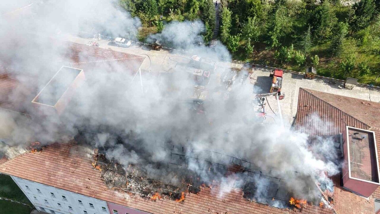 Kocaeli’nin İzmit ilçesinde bir lisenin çatısında çıkan yangın söndürüldü. Çatı kullanılamaz hale gelirken, okul havadan görüntülendi.
