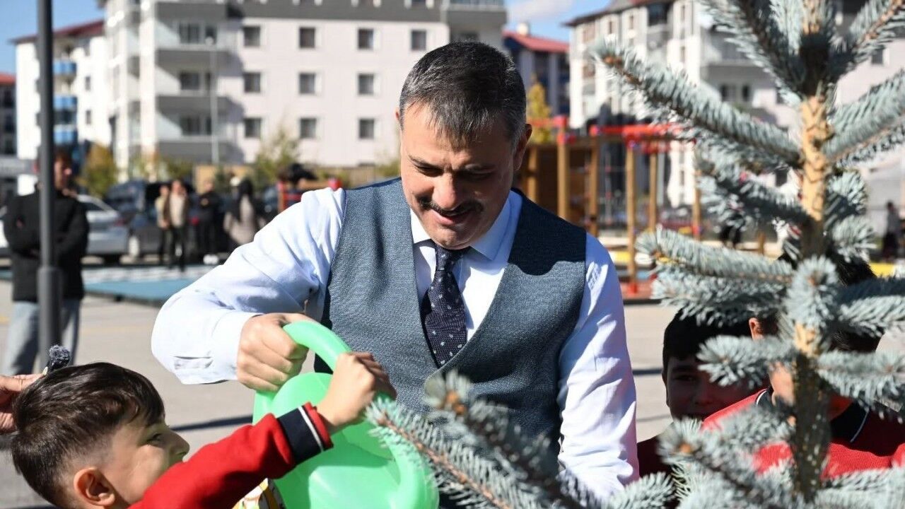 Öğrencilerle birlikte sarıçam, huş ve mavi ladin fidanlarını toprakla buluşturan Vali Çiftçi, çocuklara doğayı korumanın ve çevreye sahip çıkmanın millî bir görev olduğunu anlattı.
