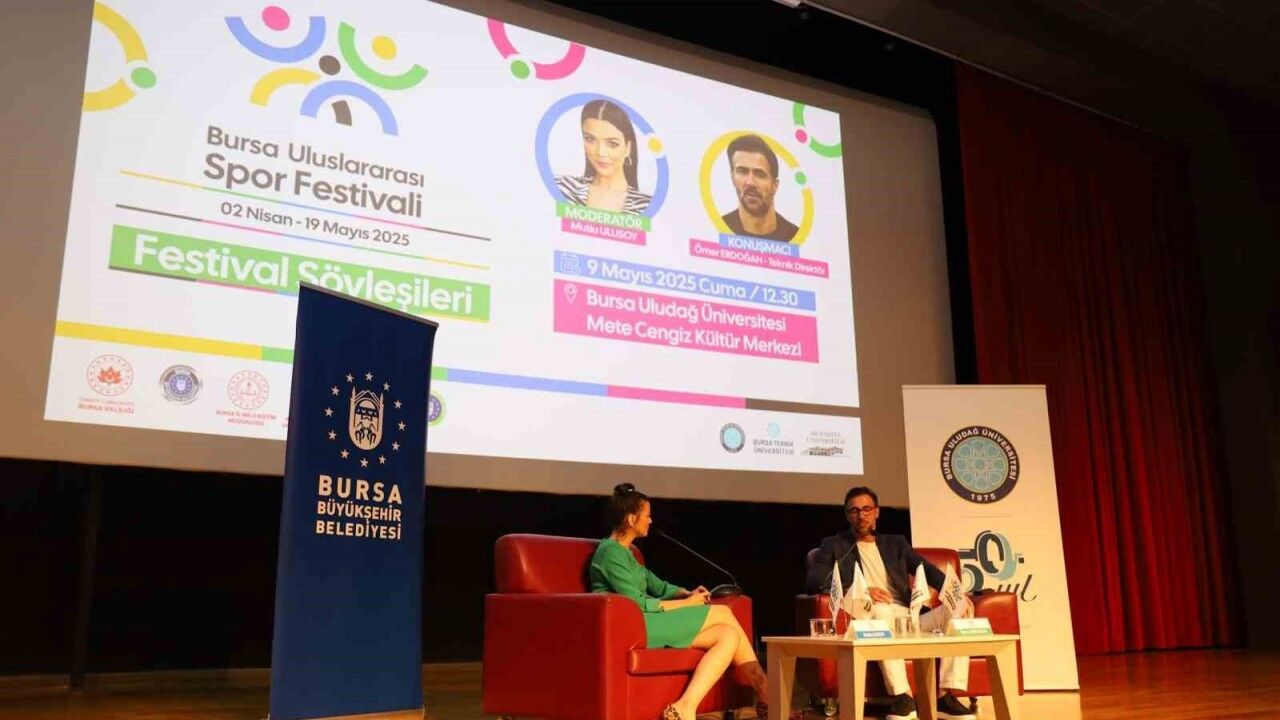 Bursa Valiliği ve Bursa Büyükşehir Belediyesi öncülüğünde Gençlik ve Spor İl Müdürlüğü, İl Milli Eğitim Müdürlüğü, Bursa Kent Konseyi ve Bursa Büyükşehir Belediyespor Kulübü iş birliğinde düzenlenen Bursa Uluslararası Spor Festivali, birçok branştaki müsabaka ve turnuvalarla devam ediyor. Festival kapsamında düzenlenen ve birbirinden önemli isimlerin katıldığı ‘Festival Söyleşileri’nin son konuğu ise, Bursaspor’un şampiyon kaptanı ve teknik direktör Ömer Erdoğan oldu. Moderatörlüğünü Mutlu Ulusoy’un üstlendiği Bursa Uludağ Üniversitesi’ndeki programa, Büyükşehir Belediyesi Genel Sekreter Yardımcısı Mehmet Yıldız, Gençlik ve Spor Hizmetleri Dairesi Başkanı Gökay Azak ve çok sayıda öğrenci katıldı.