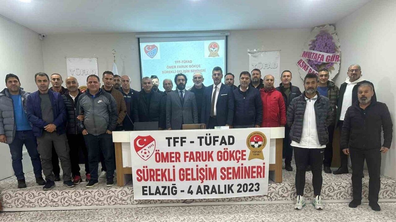 TFF ve TÜFAD iş birliğinde yapılan sürekli gelişim seminerlerinin üçüncü ve son olanı Elazığ’da gerçekleştirildi. Amatör Spor Evi Konferans Salonunda yapılan seminere UEFA A, TFF A, UEFA B, TFF A Kaleci, UEFA Elit A belgesine sahip 50 antrenör katılım sağladı. Seminere Elazığ’ın yetiştirdiği antrenörlerden merhum Ömer Faruk Gökçe’nin adı verilerek vefa örneği gösterildi. Muş Alpaslan Üniversitesi BESYO Dekanı Prof. Dr. Alper Karadağ futbol taktiksel beceri konusunda eğitmen olarak katılım sağladı. Seminerde konuşma yapan Elazığ TÜFAD Şube Başkanı Prof. Dr. Ercan Gür, Kurucu Başkan merhum Münir Yılmaz’dan miras kalan vefa örneğini devam ettirmeye kararlı olduklarını, bu vesile ile merhum Ömer Faruk Gökçe’nin ismini seminere vererek, rahmet ve minnetle andığını belirterek, yakınlarına ve sevenlerine başsağlığı diledi.