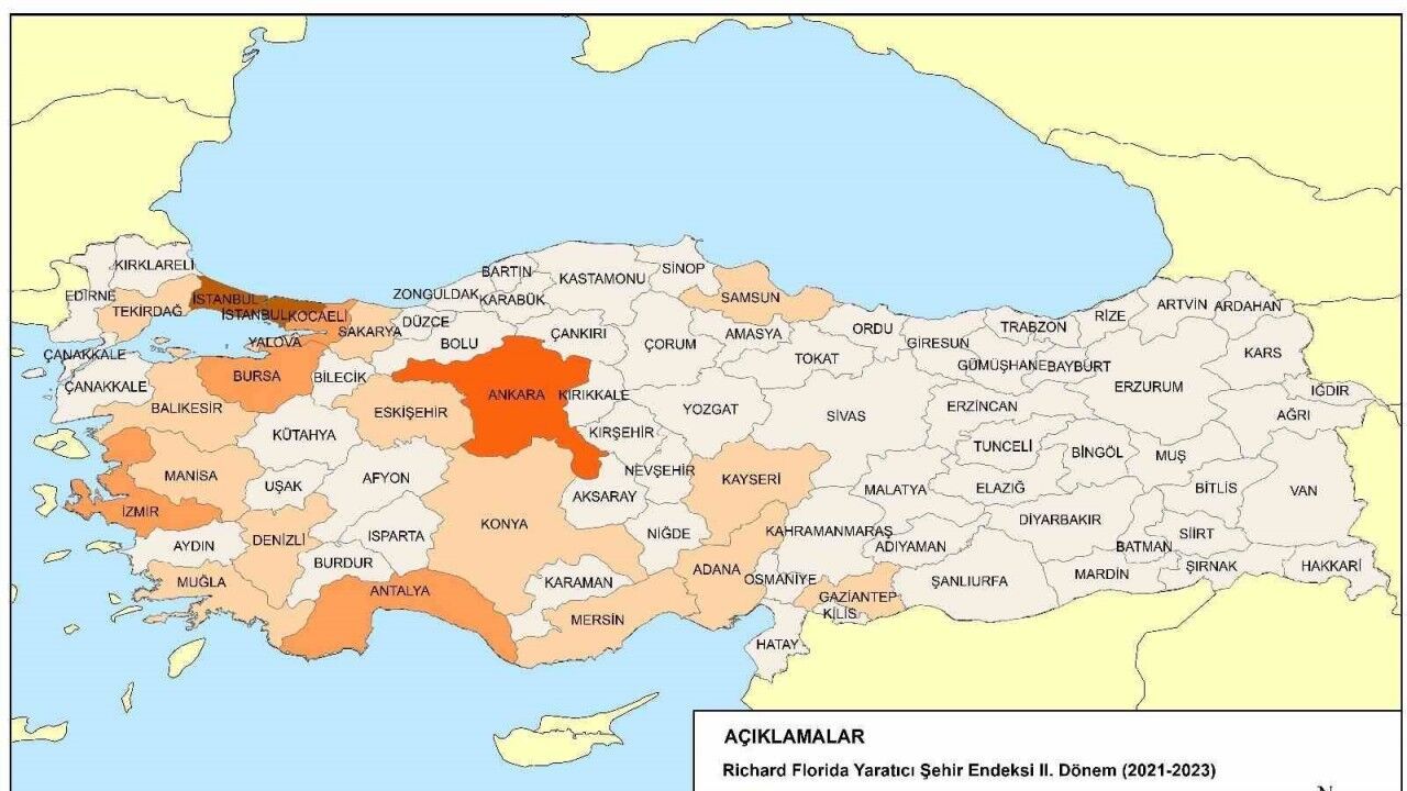Çalışmanın temel bulgularına göre, Florida’nın endeksinde üretken şehir sayısı küresel ölçekte azalma eğilimindeyken, Türkiye’ye özgü endekste bu sayı artış gösterdi. Teknoloji ve yetenek bileşenlerinde iki endeks arasında benzerlik görülürken, tolerans göstergesi Türkiye’nin toplumsal dinamiklerine bağlı olarak farklı sonuçlar ortaya koydu. İstanbul, Ankara ve İzmir’in yanı sıra Eskişehir, Kocaeli, Gaziantep ve Kayseri gibi şehirler, "yükselen merkezler" olarak öne çıktı.