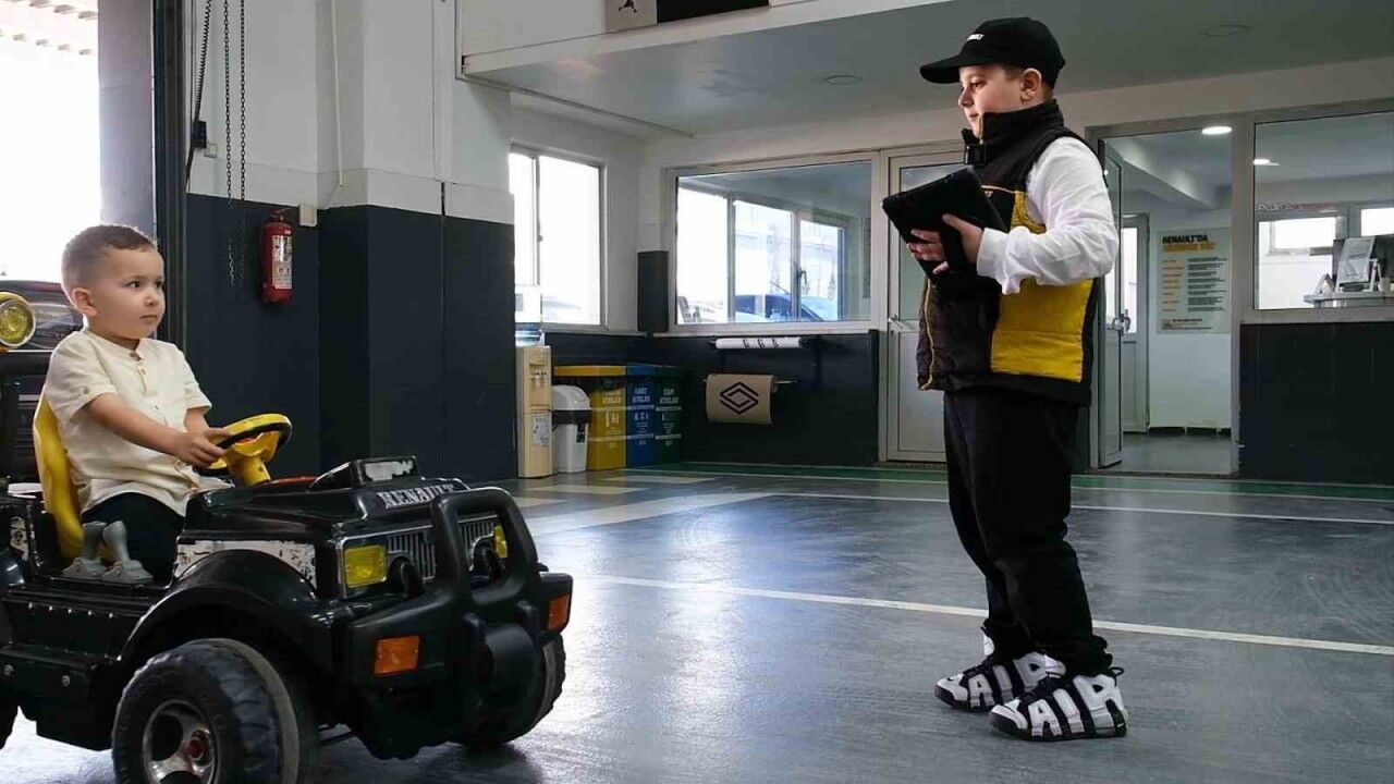 Bursa’da 23 Nisan Ulusal Egemenlik ve Çocuk Bayramı’ndan önlüğü giyen minikler, oto tamir ustalığına soyundu. Satış sorumluluğundan ekspertize kadar birçok alanda görülen miniklerin videosu, izleyenlerin yüzünü gülümsetti.