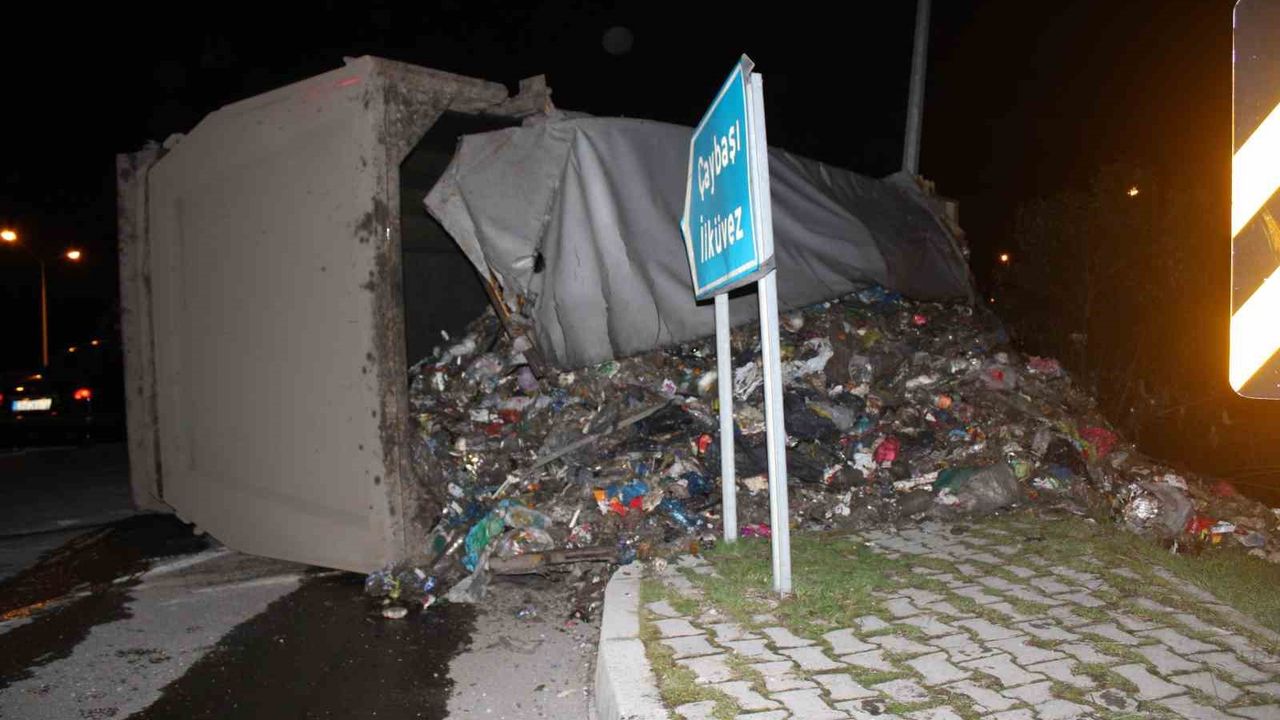 Ordu'nun Ünye ilçesinde virajı alamayarak devrilen çöp kamyonunun sürücüsü yaralandı. Kaza sonrası yola saçılan çöpler nedeniyle ulaşım bir süre kontrollü sağlandı.
