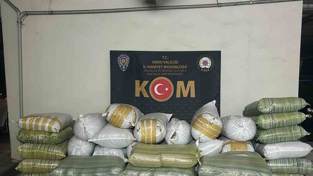 Ordu’da polis ekiplerince yürütülen kaçakçılık operasyonunda 100 bin dal içi dolu makaron ve 1 ton 215 kilo tütün ele geçirildi.