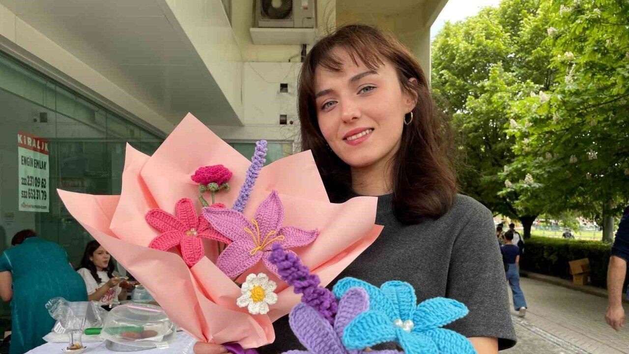Eskişehir’de örgü ve çiçek tutkusunu bir araya getirerek örgüden buketler yapan Yeliz Elmas, solmaması sebebi ile bu ürünlerin daha çok ilgi gördüğünü belirtti.