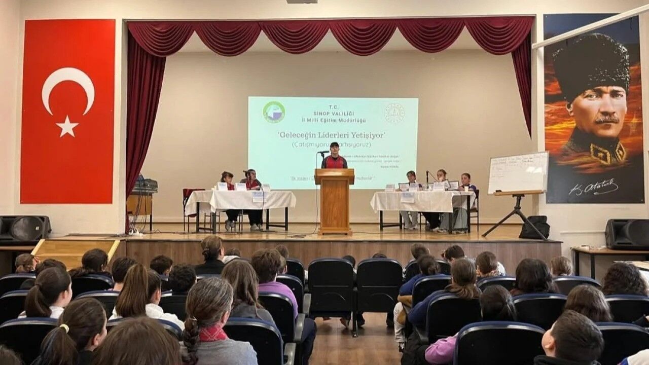 Sinop'ta ortaokul öğrencileri, münazarada fikirlerini savunarak heyecan dolu bir yarış sergiledi.