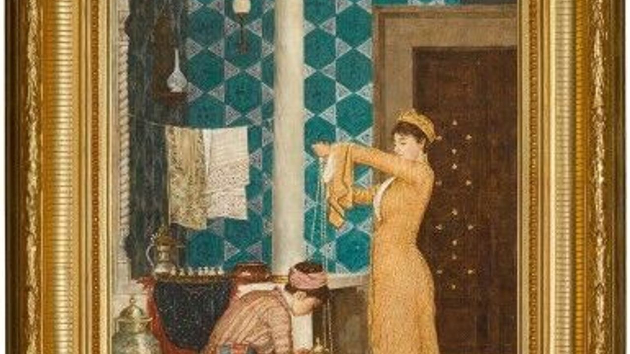 Topkapı Sarayı’nın harem bölümü tasvir edilen tabloda, kahve hazırlayan iki genç kadın betimleniyor.