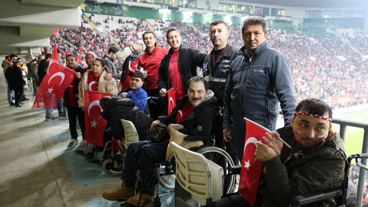 Maç boyunca büyük heyecan ve coşku yaşayan engelli bireyler milli maçı stadyumdan izlemelerini sağlayan Osmangazi Belediye Başkanı Erkan Aydın’a teşekkür etti.
