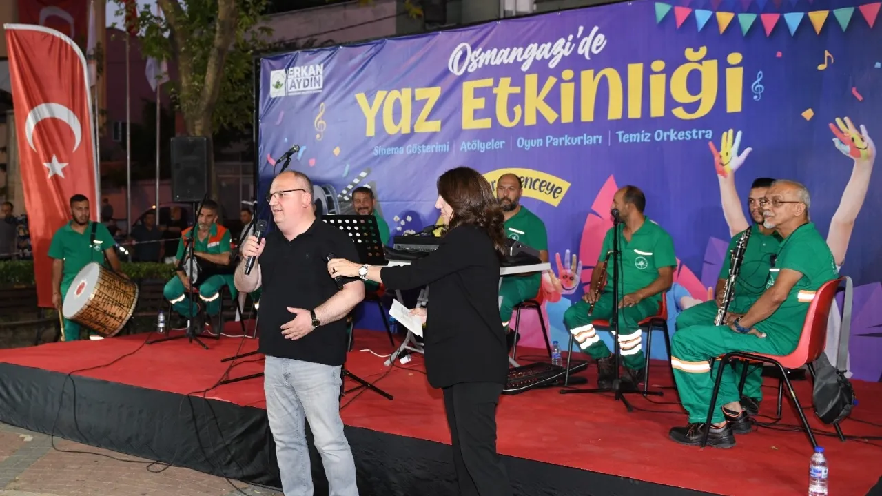 Şehit Kıdemli Üsteğmen Kamil Baltacı Çocuk Parkı’nda düzenlenen program, ilk olarak çocuklara yönelik birbirinden renkli ve eğlenceli aktiviteler ile başladı. Programa katılan onlarca çocuk, aktiviteler ve çeşitli ikramlar ile unutamayacakları bir gün yaşadı. Kurulan oyun parkurlarında çocuklar doyasıya eğlenirken, yetişkinler de çeşitli atölye çalışmalarına katıldı. ‘Osmangazi’de Yaz Etkinliği’ programının finalinde ise Osmangazi Belediyesi Temizlik İşleri Müdürlüğü’nde görevli işçiler tarafından kurulan Temiz Orkestra sahne aldı. Orkestra, seslendirdiği pop, arabesk ve halk müziği şarkıları ile dinleyicilere unutulmaz bir gece yaşattı. Temiz Orkestra’nın söylediği şarkılar eşliğinde sahneye çıkan vatandaşlar da bol bol oynayarak keyifli vakit geçirdi.