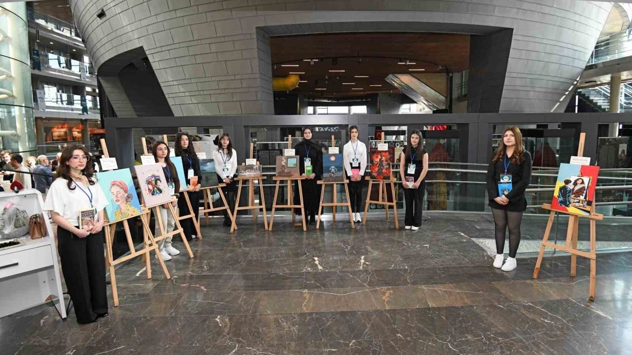 Bursa İl Milli Eğitim Müdürlüğü AR-GE Birimi'nin hazırladığı ve Türkçe ile dil eğitiminde iyi örnek olarak sunulacak çalışma, bu yıl için bir sergiye dönüştürüldü. Nursel Çağlar Anadolu Lisesi öğrencileri, okudukları eserlerden etkilenerek kahramanları, mekanları ve dikkatlerini çeken sözleri resimlerine yansıttı. Öğrencilerin tamamen kendi seçimleriyle şekillenen eserler, edebiyatın derinliğini görsel sanatlarla buluştururken; Bursa'ya özgü geleneksel sanat ve zanaat unsurlarıyla zenginleştirildi.
